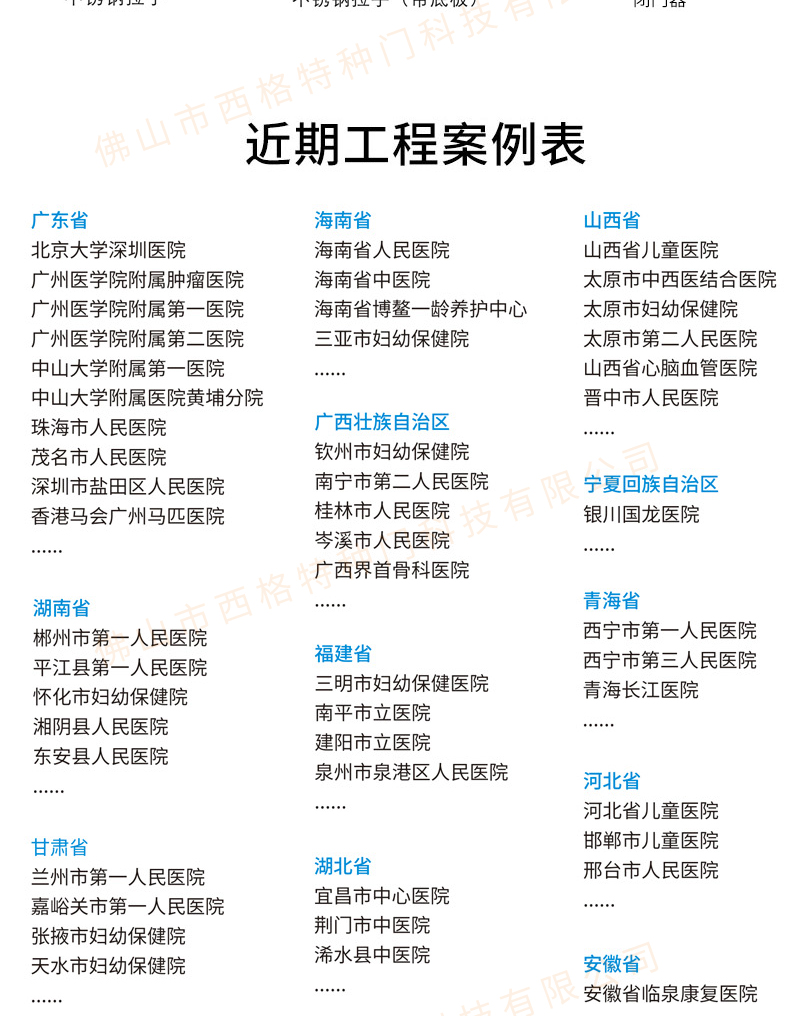產品簡介:chnsige西格特種門,專業生產醫院門,醫院診室門,醫院辦公室門,醫院衛生間門,木質醫院門,鋼質醫院門,多鐘款式、顏色,尺寸可定制。
