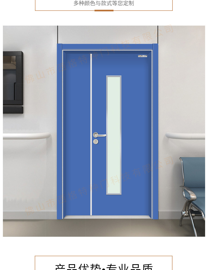 產品簡介:chnsige西格特種門,專業生產病房門,醫院病房門,醫院病房木門,病房木門,木質病房門,鋼質病房門,多鐘款式、顏色,尺寸可定制。